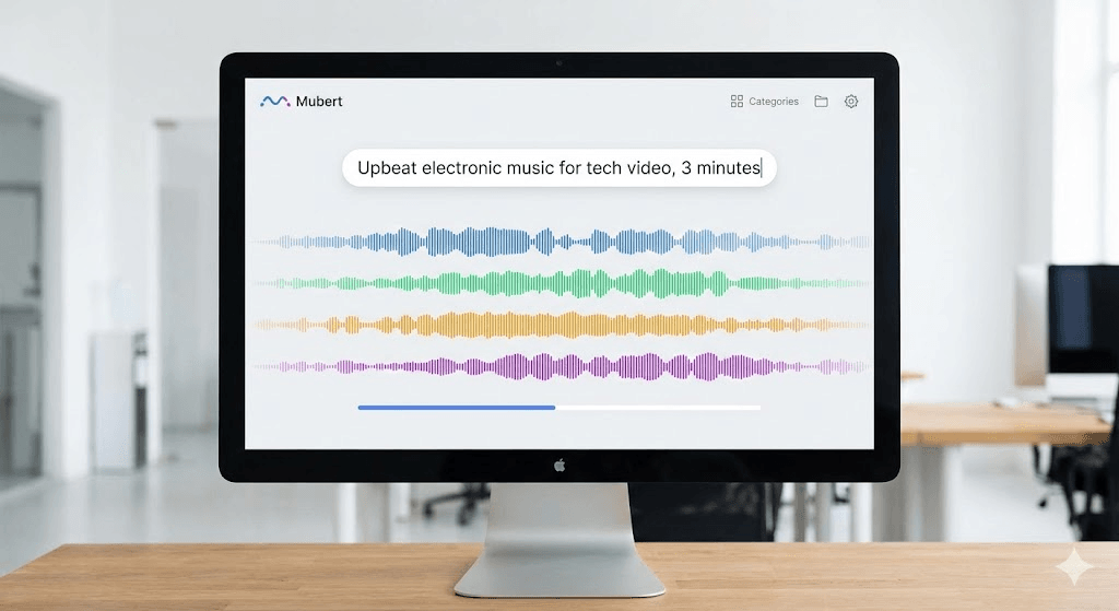 Mubert is an AI music generator. You type in what you want (like 'upbeat electronic music for a tech video, 3 minutes'), wait about 15 seconds, and it gives you a track. The music is royalty-free, so you can use it in YouTube videos, podcasts, client work whatever without worrying about copyright strikes.